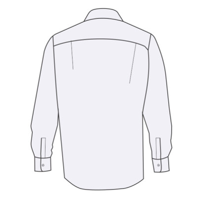 55% cotton/45% polyester. In transition to using recycled polyester. Easy iron fabric. Slim fit. Semi-cut away collar. Back yoke. Back darts. Two button cuffs with button on cuff gauntlet. Curved hem.