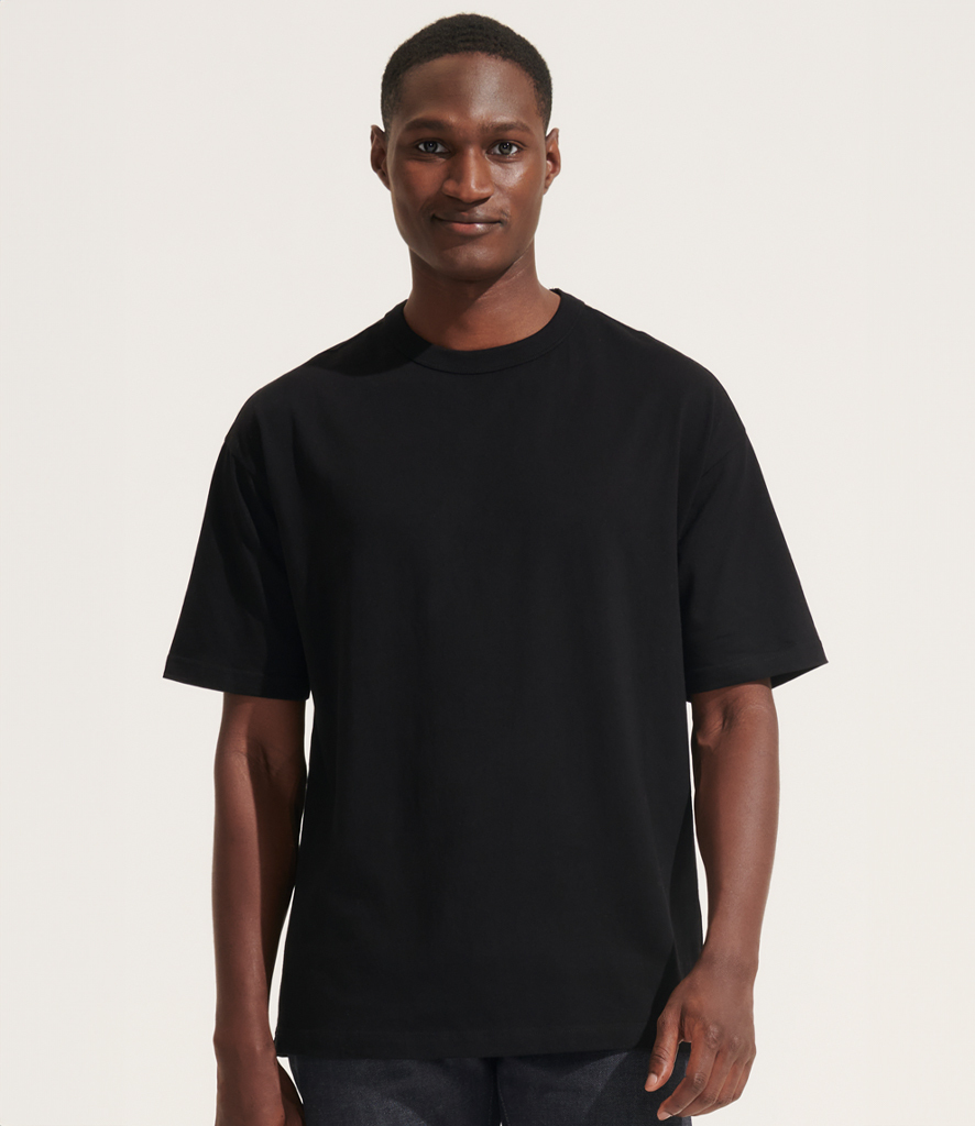 100% organic combed cotton. Oversized fit. Ribbed collar. Taped neck. Side seams. Twin needle stitching. Unbranded size label at neckline.