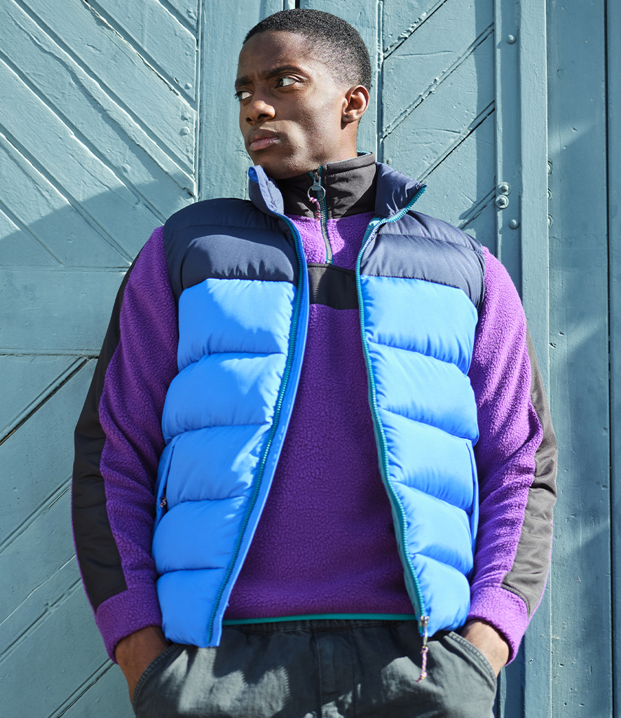 100% polyester. Made from at least 30% recycled polyester (in transition). Recycled polyester padding. Polyester lining. Showerproof. Full length contrast zip with chin guard and inner zip guard. Contrast shoulder panels. Two front concealed zip pockets. Cut out label. Ideal for screen, transfer and vinyl printing.