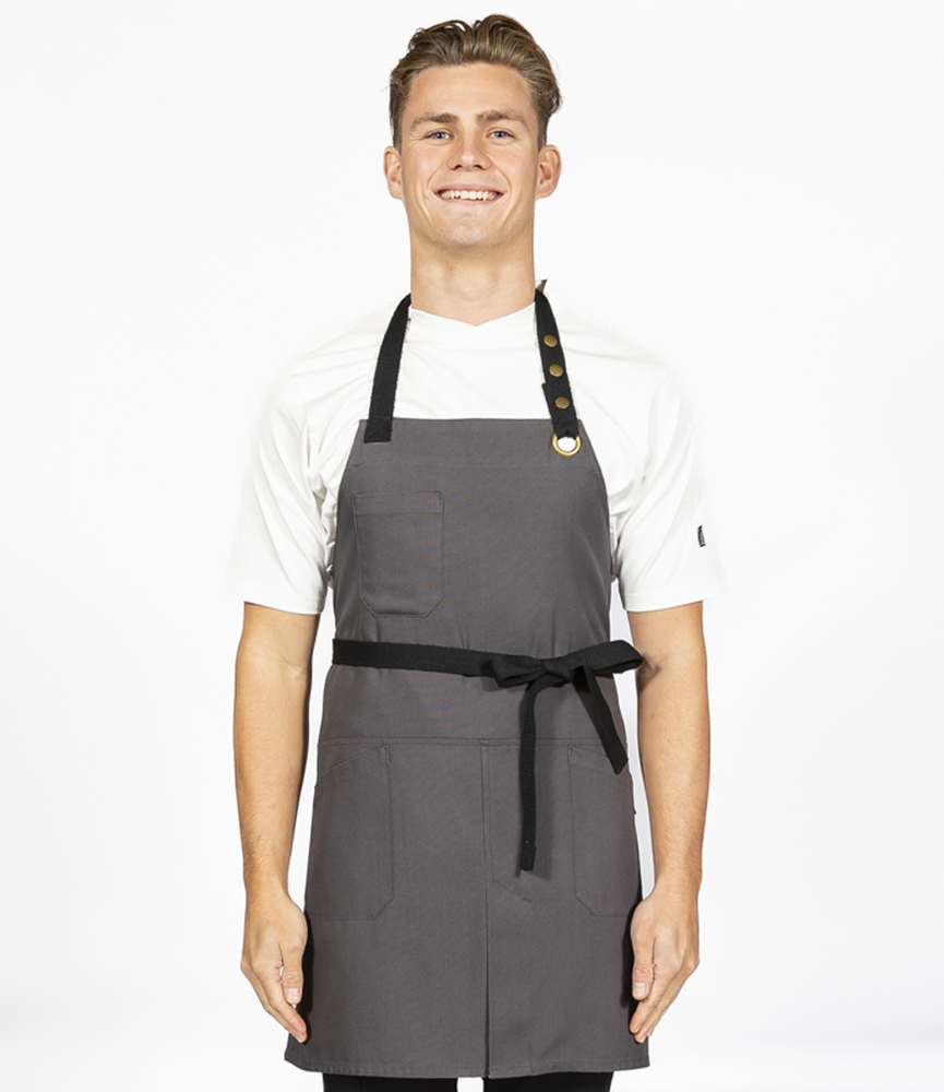 100% heavy cotton canvas. Large metal eyelet detail for adjustable stud neckband. Right chest pocket. Large front pockets. Front vent. Black webbing ties. Width 71cm. Length 71cm. 40°C wash.