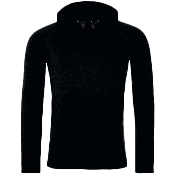 92% polyester/8% elastane. DynamicCool™ responsive blended fabric. Raglan sleeves. Cowl neck style hood with toggles. Reflective elements on hood. Reflective tab on back neck for ear phone cord. Thumbholes on cuffs. Overlock stitched seams. Twin needle hem. Tear out label.