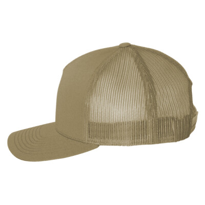 100% cotton front panels and peak. Polyester mesh rear panels. 5 panel. Pre-curved peak. Interchangeable Rip-Strip™ cotton twill patch (9 x 5.5cm print area). Retro style snapback size adjuster. Tear out label. Compatible with removable cotton patch BB600 and MOLLE Utility Sublimation Patch BG841.