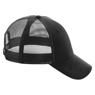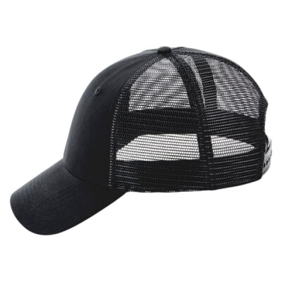 100% recycled polyester. Recycled polyester mesh rear panels. 6 panel. Structured front panels. Pre-curved peak. Snapback size adjuster. Tear out label.