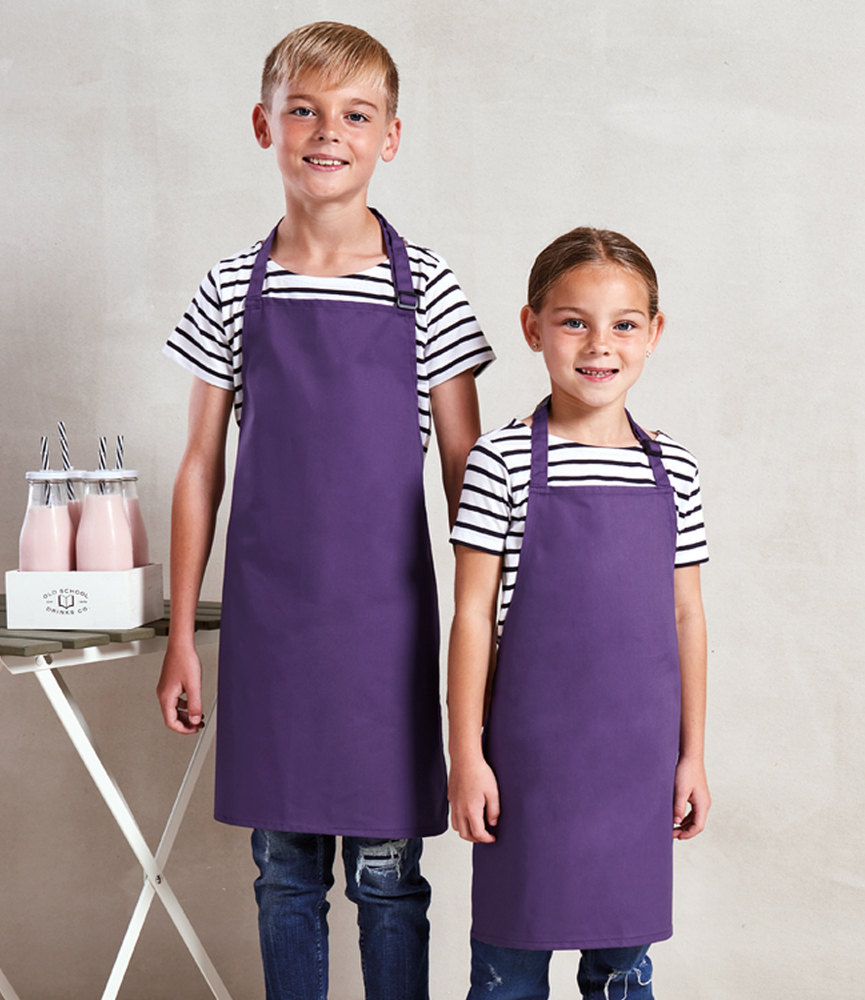 65% polyester/35% cotton twill. Easy care fabric. Self fabric adjustable neckband with snap release. Self fabric 50cm ties. Industrial laundry 85°C. Domestic wash 60°C.