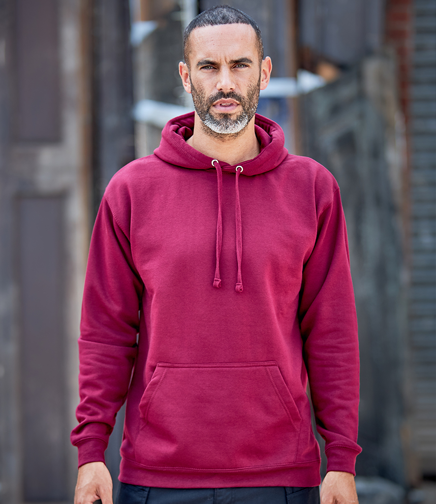 Modern unisex fit. Lined hood. Self colour adjustable drawcord. Front pouch pocket. Ribbed cuffs and hem. Twin needle stitching.