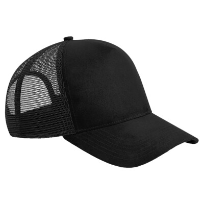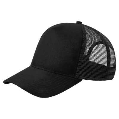 100% polyester suede. Polyester mesh rear panels. 5 panel. Structured front panels. Pre-curved peak. Snapback size adjuster. Tear out label.
