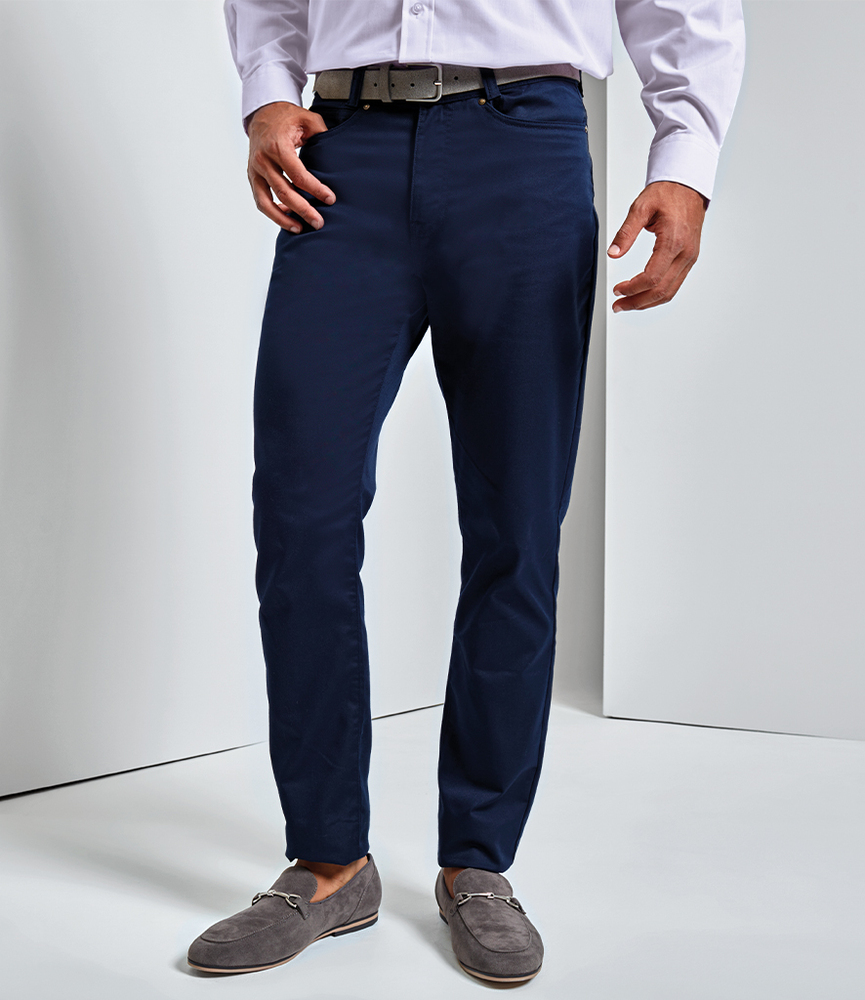 63% polyester/35% cotton/2% elastane. Easy care fabric. Stretch fabric for ease of movement. Belt loops. YKK zip fly with button over. Two side pockets with rivet detail. Rear patch pockets. Domestic wash 60°C.