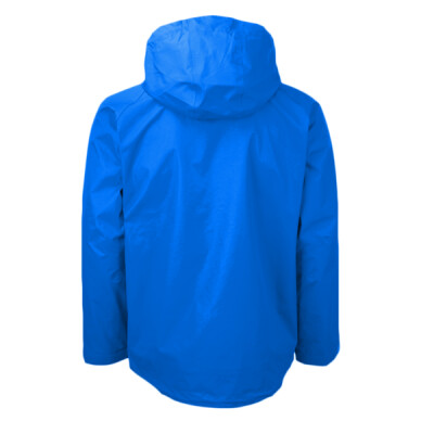 Nylon taslon with PU coating. Mesh lined body and polyester lined sleeves. Shower resistant with critically taped seams. Breathable. Soft touch inner collar. Concealed adjustable three panel hood. Tear release double storm flap with rain channel. Raglan sleeves with articulated elbows. Right chest zip pocket. Two front zip pockets - one contains media pocket. Adjustable cuffs. Drop hem with drawcord. Access for decoration.
