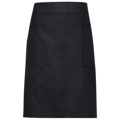 100% cotton denim with acrylic coating. Easy care fabric. Durable waxed look finish. Contrast fabric ties with metal eyelets. Large jeans pocket with stitching and rivet detail - tablet friendly. Patch pocket and cloth holder. Width 70cm. Length 50cm. Domestic wash 60°C.