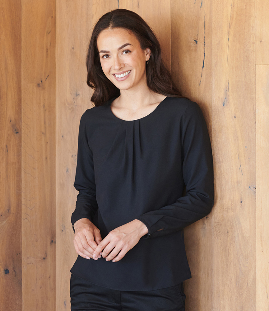 Henbury Ladies Pleat Front Long Sleeve Blouse