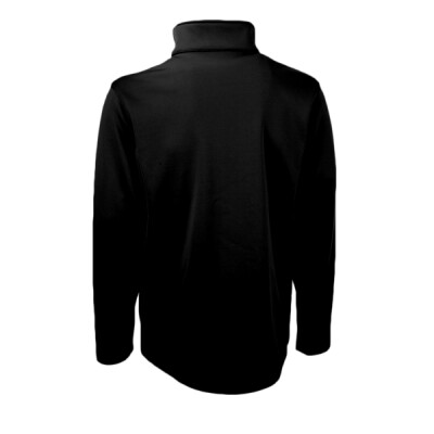 Two layer bonded soft shell. Woven polyester outer bonded with micro fleece inner layer. Showerproof DuPont™ Teflon® coating. Wind resistant and breathable. Taped neck. Full length reverse tape zip. Two front zip pockets. Ear phone access. Open cuffs and hem. Drop hem.
