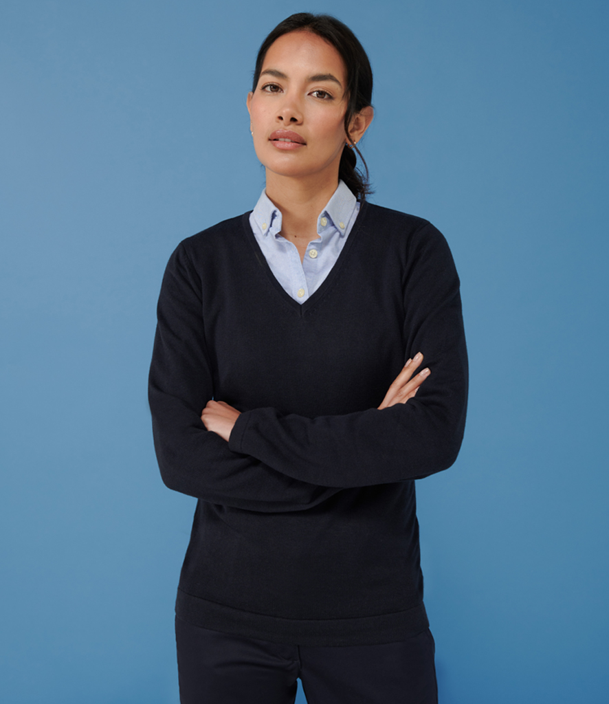 Henbury Ladies Lightweight Cotton Acrylic V Neck Sweater