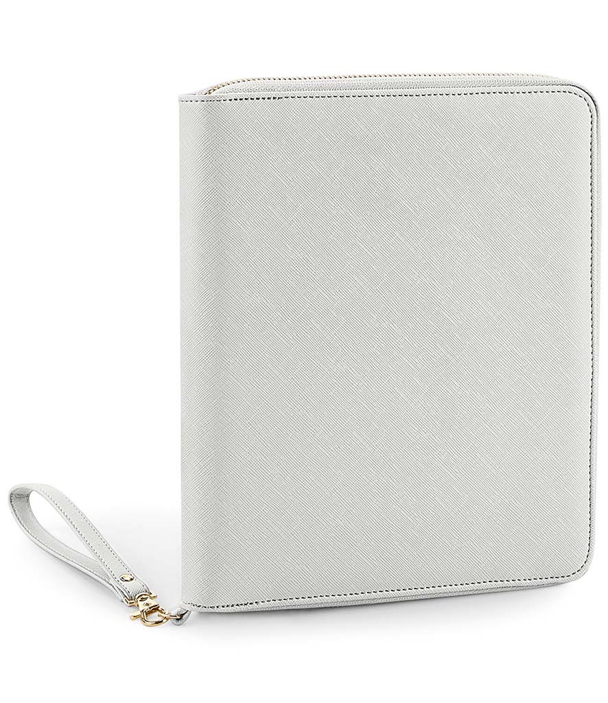 100% leather-look PU. Saffiano fine grain. Soft touch lining. Holds six credit cards. Main zip compartment. Internal zip pocket. Multiple internal pockets. iPad mini™/Tablet compatible. Can be decorated front and rear. Tear out label.