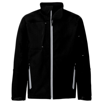 Three layer soft shell. 94% polyester/6% elastane outer. Waterproof 5000mm, breathable 5000g/m² and windproof hydrophobic membrane. Part honeycomb jersey lining, part fleece lining. Bionic-Finish® Eco treatment. Fluorine and PFC free. Classic fit. Stand up collar. Full length contrast zip with chin guard and inner zip guard. Hydroshell underarm ventilation panels. Right chest covered zip pocket. Inner mesh media pocket. Left sleeve zip pocket. Two contrast front zip pockets. Tear release adjustable cuffs. Access for decoration.