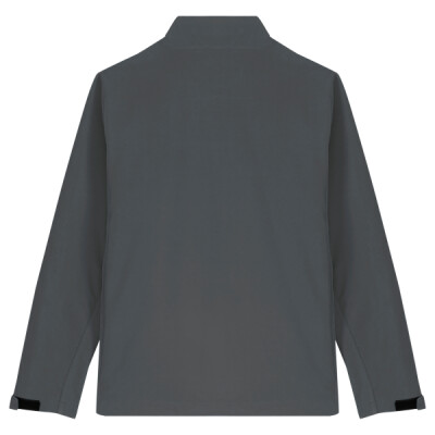 Men’s softshell jacket, medium fit with a high collar and set-in sleeve. Bottom hem with adjustable plastic stopper and elastic cord. Reverse nylon zip at centre front. Zipped outside welt pockets with reflective elastic puller. Fully bonded inside fleece layer. Side panels and stretch for better shape. Adjustable hook and loop sleeve opening. Inside seams finished with recycled binding. Water-repellent up to 10,000mm, breathability up to 3000G/M2/24hrs allowing perspiration to escape. Windproof. Bionic ECO DWR (durable, water-repellent) finish.