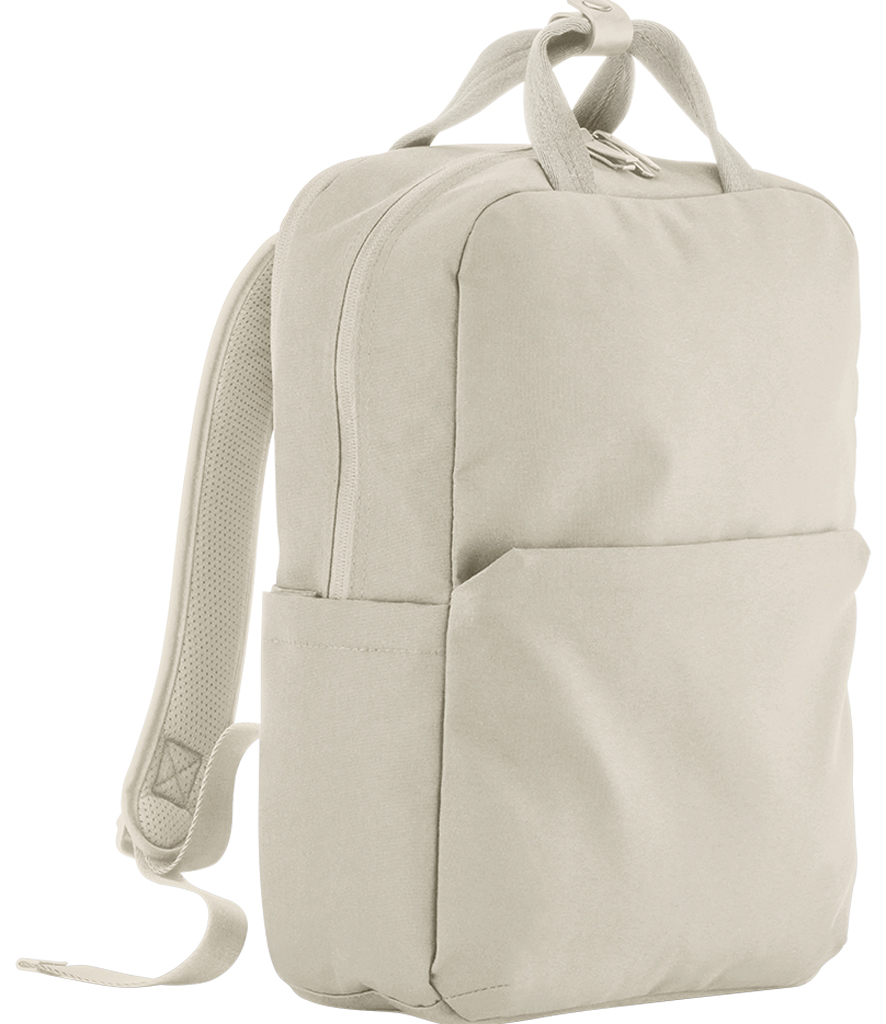 100% recycled 600D polyester. Water repellent fabric. Grab handle. Padded adjustable shoulder straps. Large main zip compartment. Padded laptop compartment, compatible up to 16". Internal slip pockets. Front zip pocket. Rear zip security pocket. Self colour PU zip pulls. Rear luggage strap. Tear out label. Capacity 16 litres.