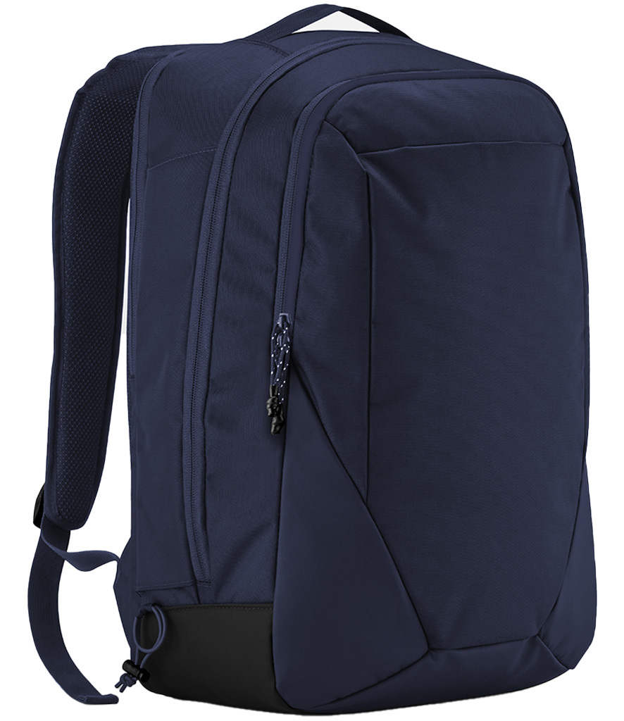 100% recycled 900D polyester. Grab handle. Padded adjustable shoulder straps. Main zip compartment with two way zip. Dedicated racquet pocket, compatible up to approx. 23cm wide. Hockey stick sleeve with elastic retainer. Front zip pocket. Stretch mesh side pocket. Tear out label. Capacity 19 litres.